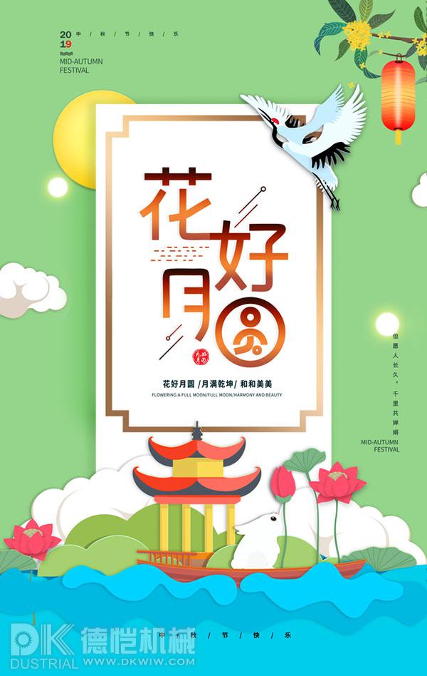 人間最美是金秋,五谷飄香豐收樂(lè );一年最圓中秋月,桂樹(shù)玉兔伴嫦娥;人生最暖是團圓,翹首盼望團圓節;最美季節賞圓月,快意人生幸福多。德愷機械全體員工祝大家中秋節日快樂(lè )!